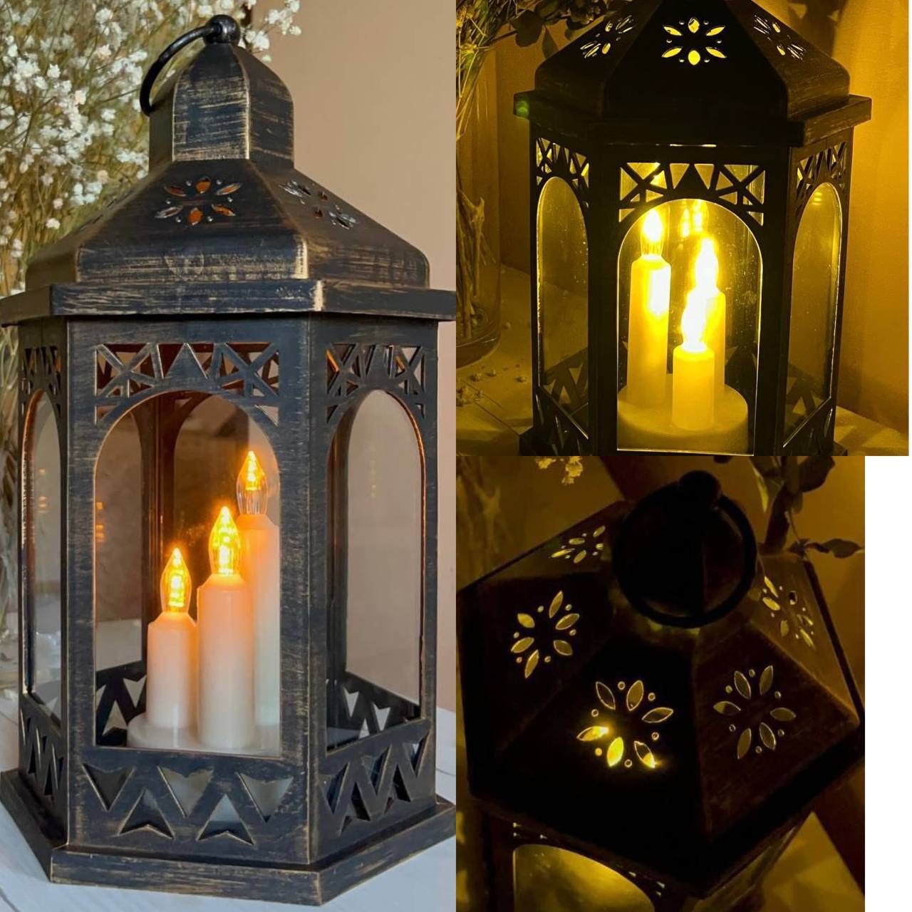 ✔️ Дизайн: Ажурні візерунки по всій лампадці, що виглядає стильно та елегантно. Всередині 3 ЛЕД-свічки.